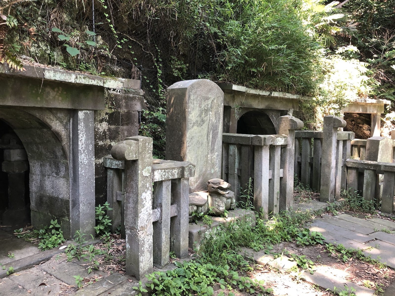 頼朝の墓の東側。これまた階段を登った山の中腹に並ぶ三つのやぐら